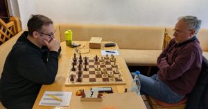Bereits früh einigte sich Hans Wagner (2072) nach sechs Zügen auf ein sogenanntes Salonremis – der erste halbe Punkt war gesichert. Gerhard Spiesberger (2077) nutzte anschließend einen Turmeinsteller seines Gegners Jürgen Neubauer (1746) konsequent aus und brachte sein Team in Führung. Andreas Klinge (1794) stand zwar mit einem Mehrbauern leicht besser, konnte diesen Vorteil aber nicht verwerten und gab schließlich gegen Johannes Wagner Dauerschach zum 2:1-Zwischenstand.
